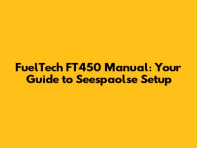 FuelTech FT450 Manual: Your Guide To Seespaolse Setup