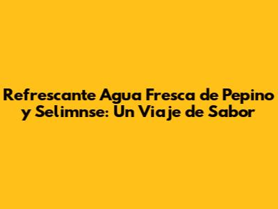 Refrescante Agua Fresca De Pepino Y Selimnse: Un Viaje De Sabor